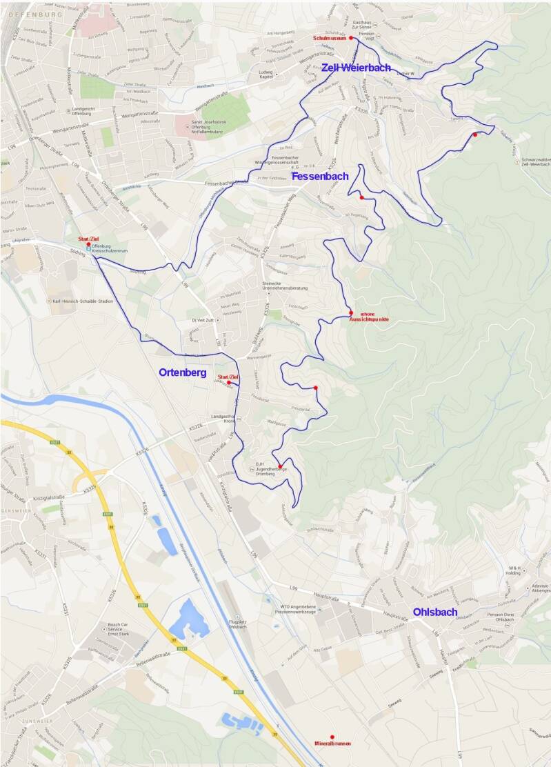 Das Gebiet erstreckt sich vom Schloß Ortenberg über die Reben mit herrlichen Aussichtspunkten bis nach Zell Weierbach/Springmatt.